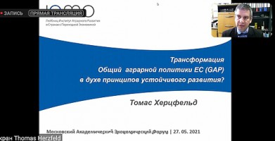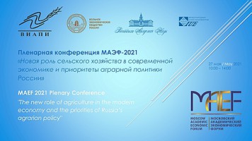 Старший научный сотрудник лаборатории экономики природопользования, к.э.н. Анна Сергеевна Щербакова приняла участие в проводимой в рамках Московского академического экономического форума Международной научно-практической конференции «Новая роль сельского хозяйства в современной экономике и приоритеты аграрной политики России», которая состоялась 27 мая 2021 г. на площадке ФГБНУ ФНЦ ВНИИЭСХ в онлайн формате.