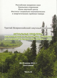 Актуальные проблемы, направления и механизмы развития производительных сил Севера – 2012: Материалы Третьего Всероссийского научного семинара (28-30 июня 2012 г., Сыктывкар): в 2 ч. Сыктывкар, 2012. Ч. II. 264 с.